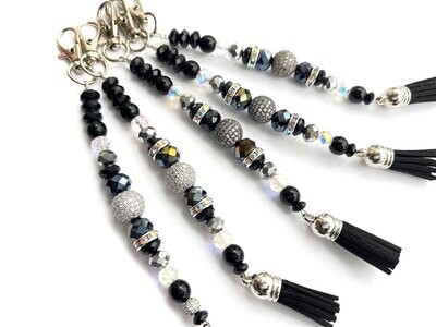 Edles Design außergwöhnliche Bindung des Federkopfes mit zusätzlichen Fellball & Swarovski Perlen am Griff.
